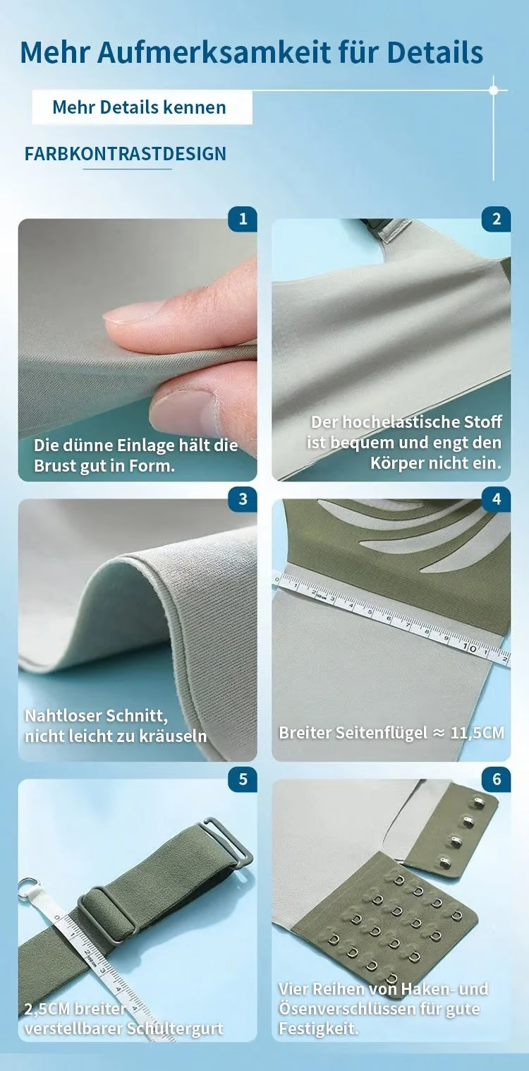 • Optimale Stützkraft: Strategisch platzierte Einsätze bieten Stabilität, wo Sie sie brauchen – ganz ohne Bügel.