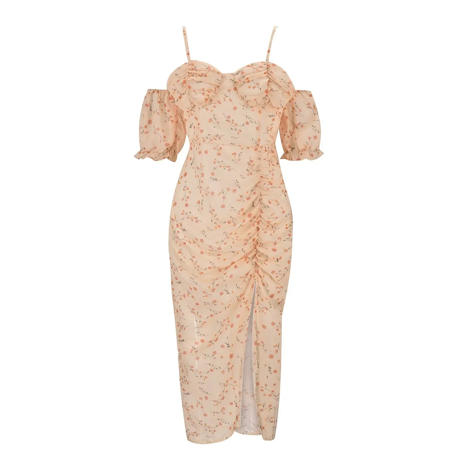 Emilia | Damen Schlankmachende Sommerkleid | Midi Beige Decorique.de