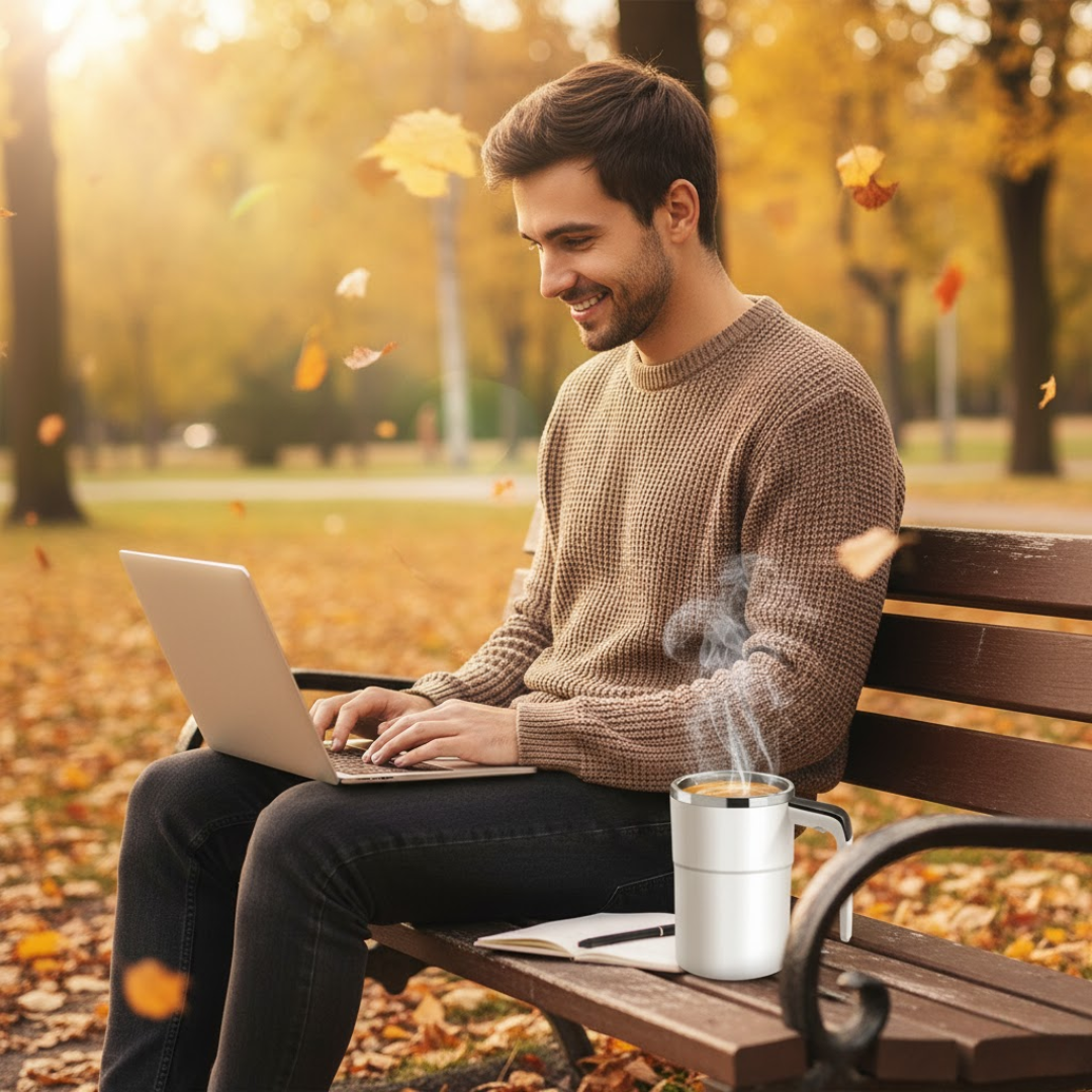 • Einfache Reinigung: Der versteckte Ladeanschluss im Griff sorgt für Sicherheit beim Waschen. Sie können die Tasse direkt unter dem Wasserhahn reinigen, ohne Angst vor Leckagen zu haben.