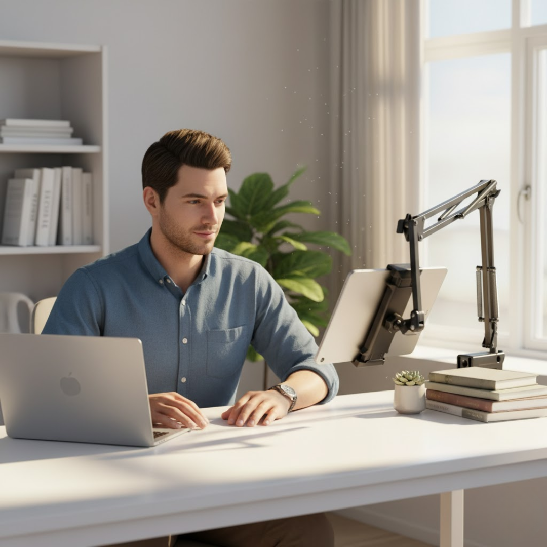 Bettina ist ein verstellbarer, vielseitiger Ständer, der dein Tablet-Erlebnis verbessert – egal ob du im Bett liegst, am Schreibtisch arbeitest oder auf dem Sofa Filme schaust. Begrüße ergonomischen Komfort und Benutzerfreundlichkeit mit Bettina an deiner Seite.