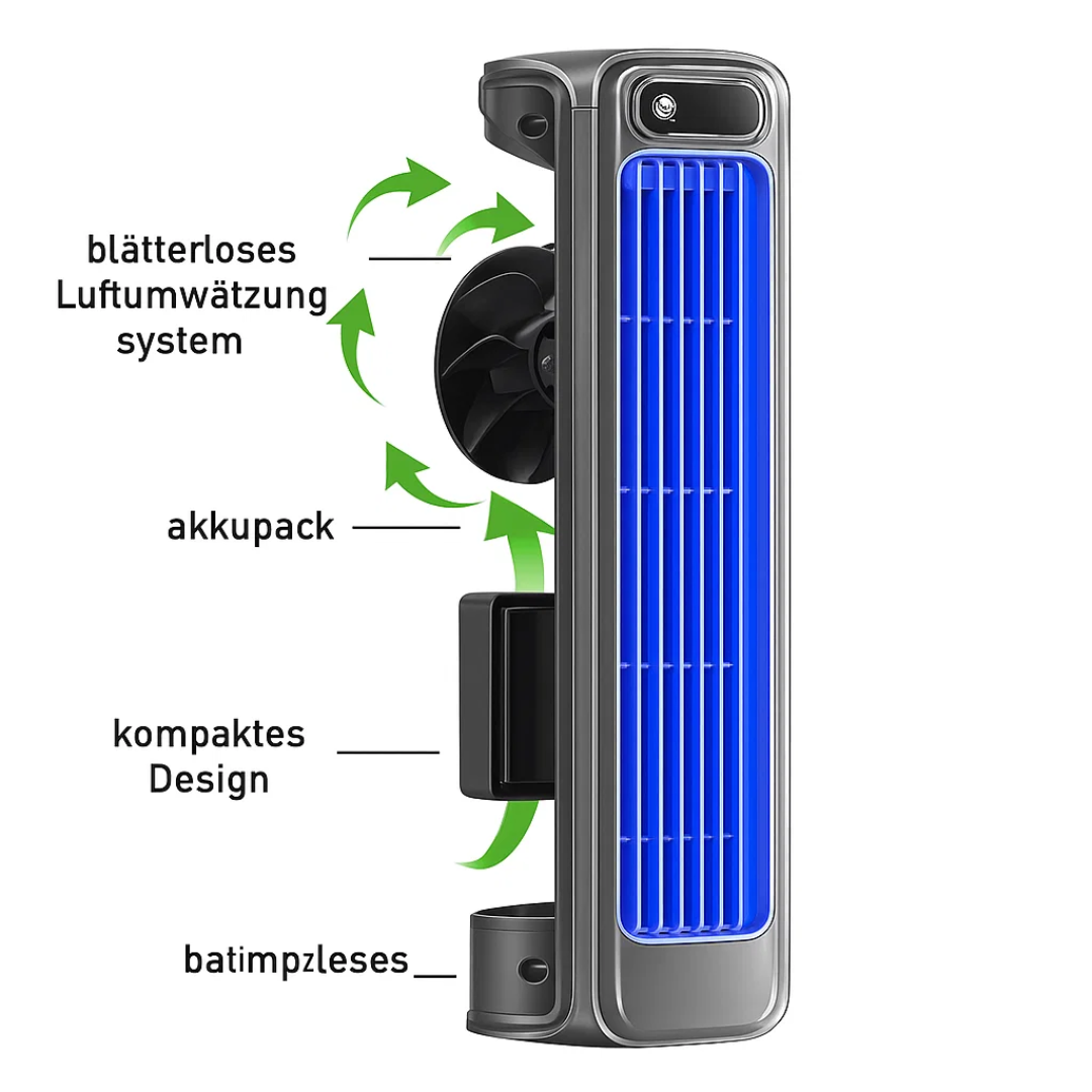 Tragbarer Luftkühler für die Wandmontage | Unisex | Lamellenlos, 2000mAh, 12h Batterie | FrostiCool