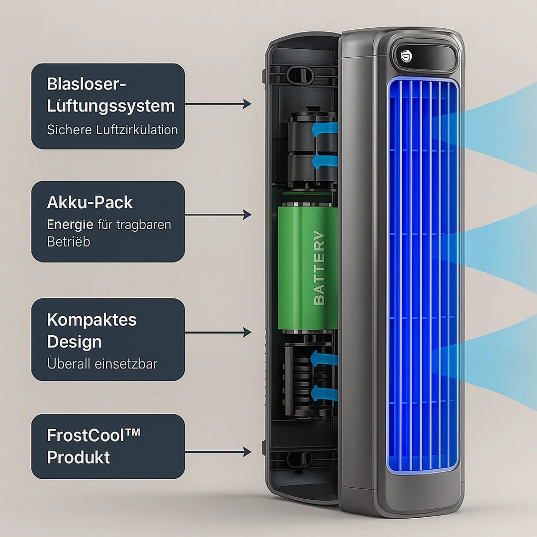 • 1 × FrostiCool tragbarer Raumkühler mit Akku