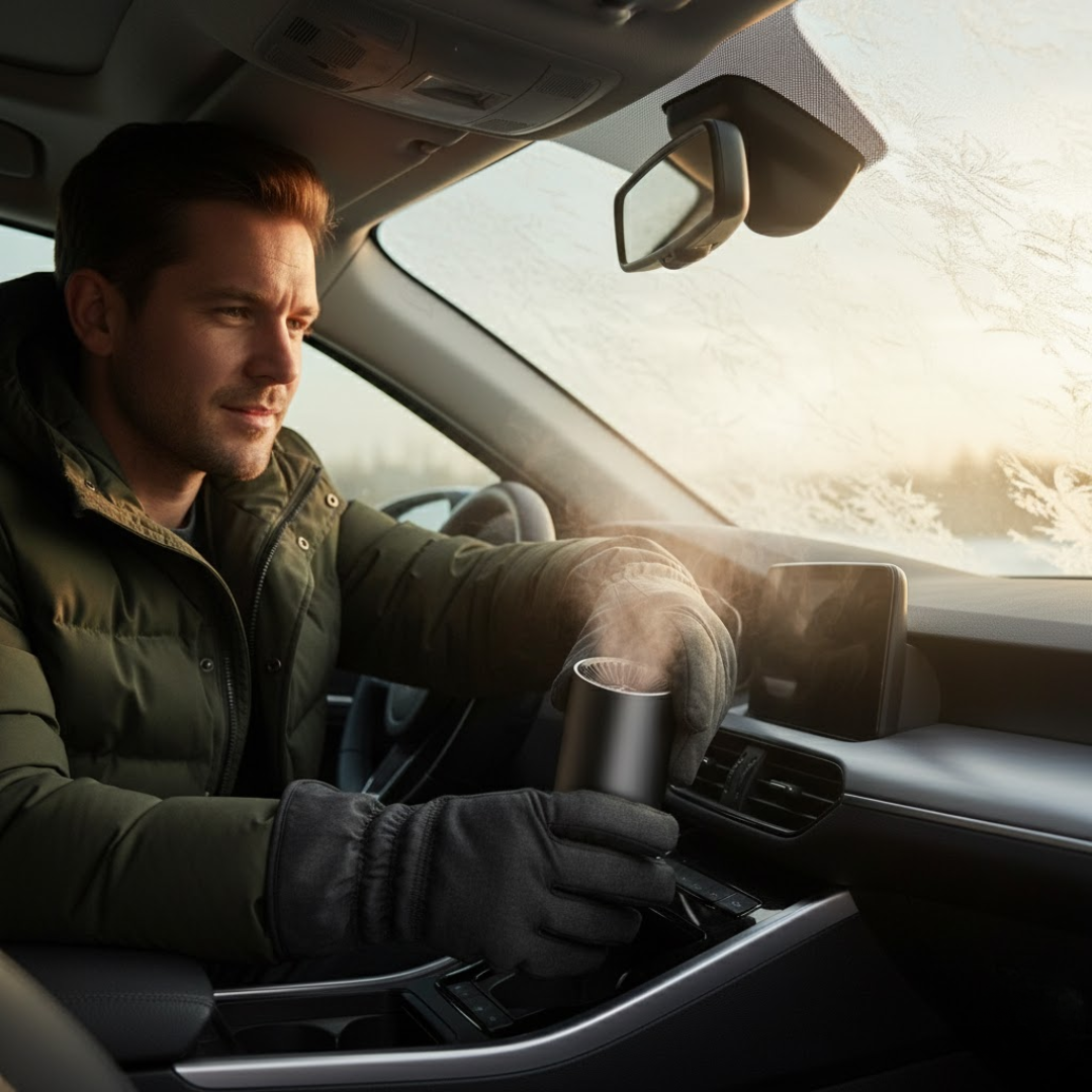 Haben Sie es satt, im Auto zu frieren und wertvolle Minuten damit zu verschwenden, darauf zu warten, dass der Motor endlich die Windschutzscheibe enteist? Die herkömmliche Heizung Ihres Autos ist langsam und ineffizient. Das QuickWarm Auto-Heizgebläse ist Ihr tragbarer Winterretter, der sich elegant in Ihren Getränkehalter einfügt und sofort warme Luft liefert, um Sie aufzuwärmen und Ihre Windschutzscheibe in Sekunden zu klären. Stecken Sie es einfach ein, richten Sie den 360°-Drehfuß aus und spüren Sie den Unterschied vom ersten Augenblick an – für eine sichere und komfortable Fahrt.
