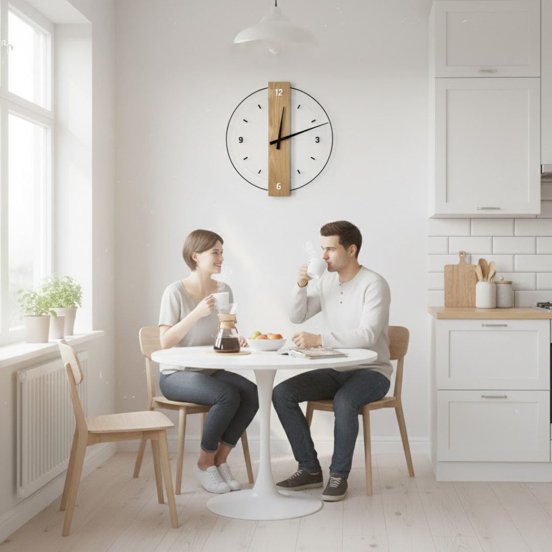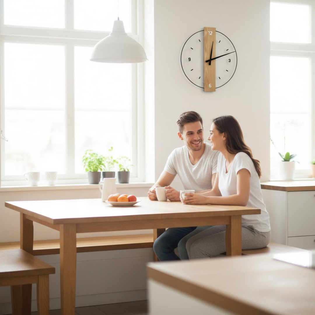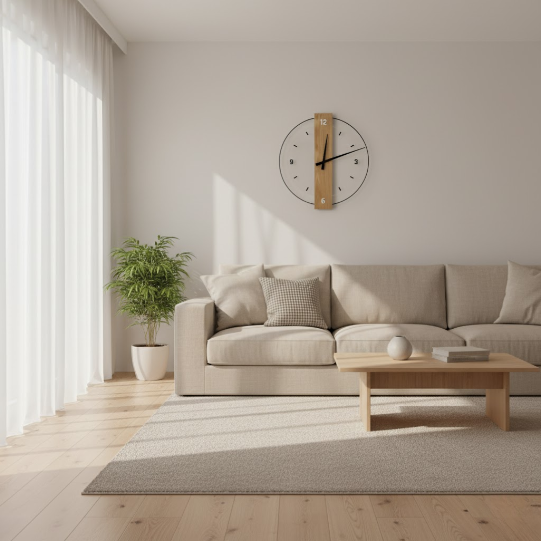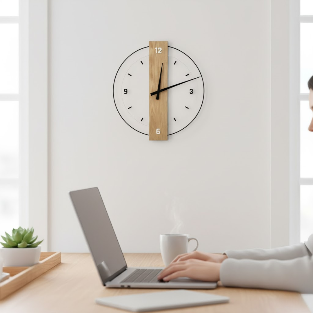 Die SilentOak Wanduhr bringt minimalistischen Stil und natürliche Eleganz in Ihr Zuhause. Mit ihrem ruhigen Uhrwerk und dem schlichten, aber edlen Design aus Eichenholz, Plexiglas und Acryl passt sie perfekt in moderne und minimalistisch gestaltete Räume.
