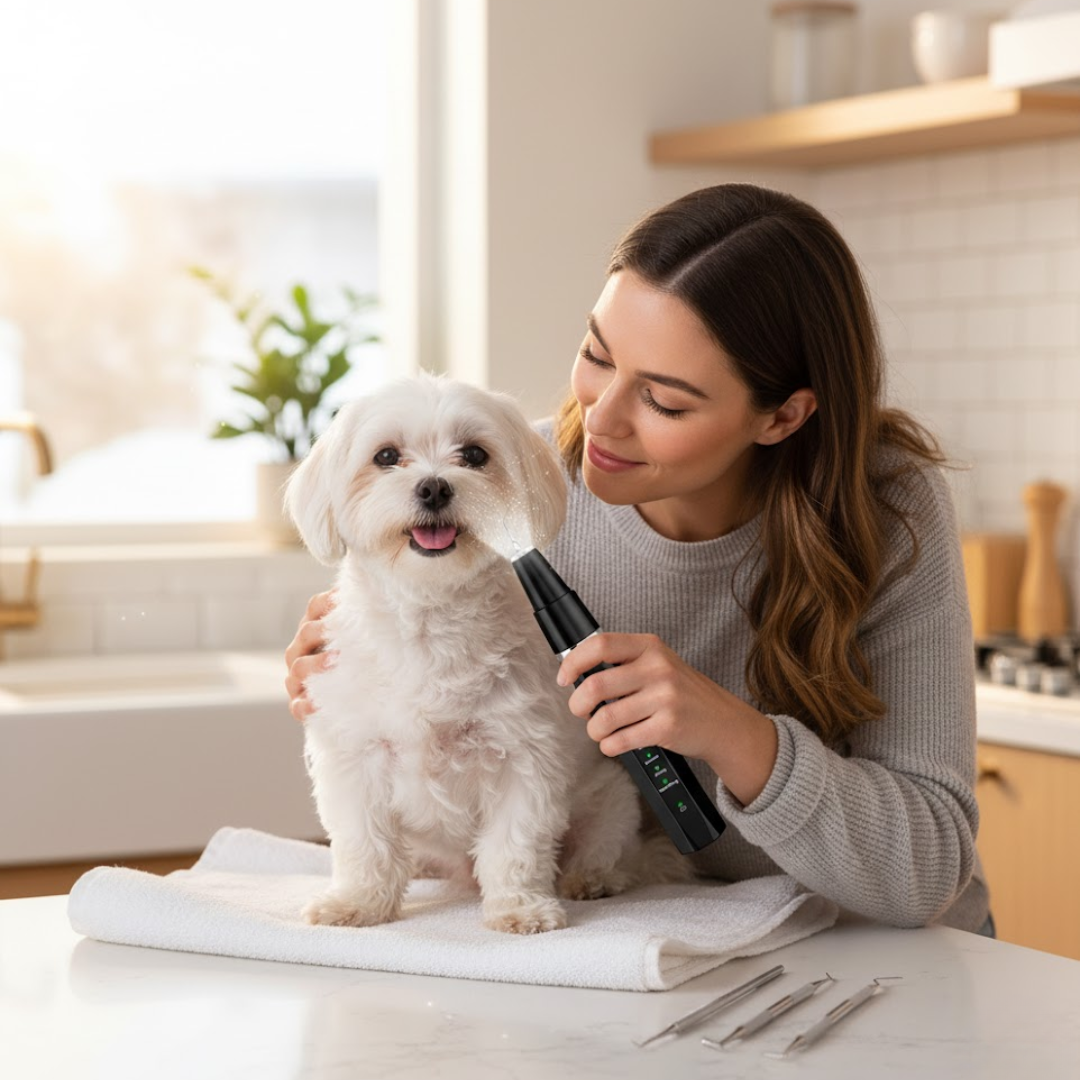 DentaPet wurde entwickelt, um die Zahngesundheit Ihres Haustiers mühelos zu verbessern. Die sanfte Ultraschallreinigung entfernt hartnäckige Beläge, beugt Zahnproblemen vor und sorgt für frischen Atem – alles ohne Schmerzen oder Angst. Sorgen Sie für ein glückliches Lächeln Ihres Lieblings. Bestellen Sie DentaPet noch heute und schenken Sie Ihrem Haustier gesunde, saubere Zähne.