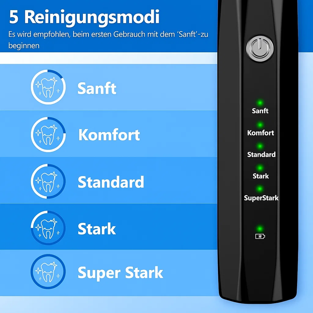 • Technologie: Ultraschall-Vibration zur sanften Reinigung