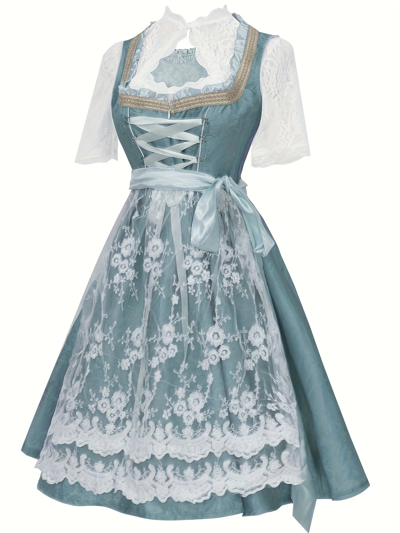 Ein gewöhnliches Kostüm fällt auf dem Oktoberfest schnell unter – mit dem AlpenFreude Damen-Oktoberfestkostüm sorgen Sie für einen verspielten und authentischen Auftritt. Dieses zweiteilige Set kombiniert eine charmante Latzhose im Dirndl-Stil mit einem passenden Oberteil. Die kurzen Ärmel, die dekorative Schleife und der verspielte Rock verleihen dem Look eine süße und zugleich traditionelle Note – ideal für Oktoberfest, Münchner Volksfeste oder Halloween-Partys.
