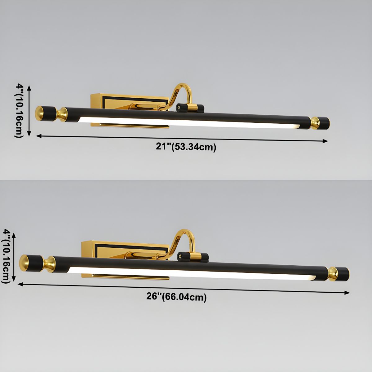 Möbeln Sie Ihr Badezimmer mit der BeaconGold Spiegelleuchte auf. Diese atemberaubende Lampe kombiniert die zeitlose Eleganz von Schwarz und Gold, um einen Hauch von Luxus in Ihren Raum zu bringen und Ihren Spiegel in ein strahlendes Meisterwerk zu verwandeln.