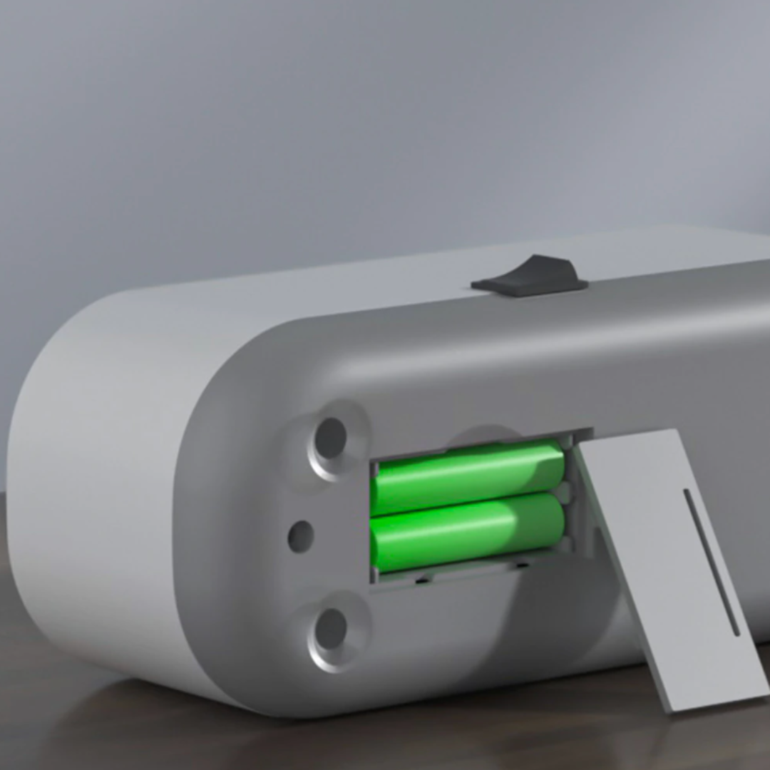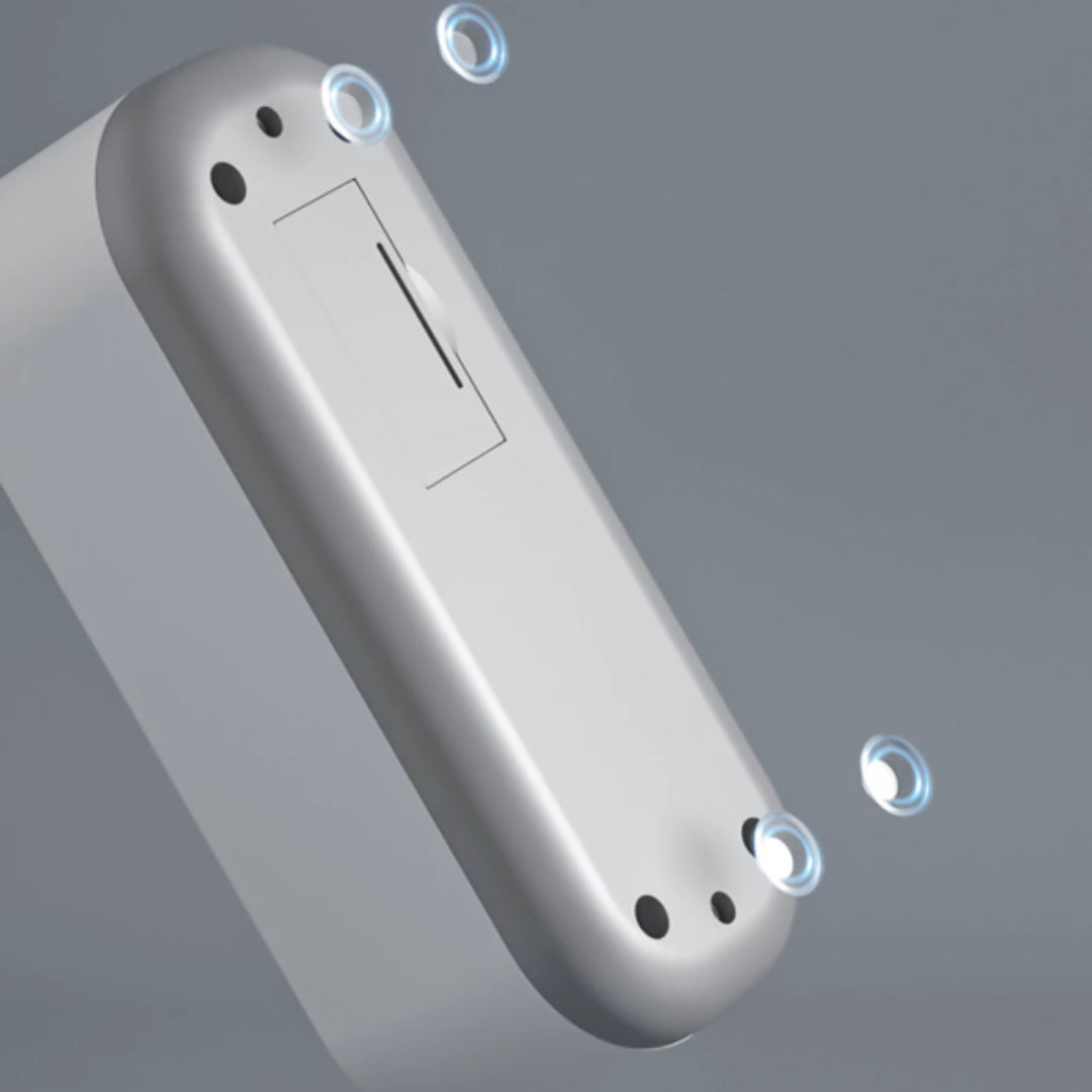 Die Unterseite des Gehäuses ist mit vier stoßdämpfenden Gummifüßen ausgestattet, die dafür sorgen, dass die Tischoberfläche geschont wird und die Lage durch die Ultraschallvibrationen stabil bleibt.