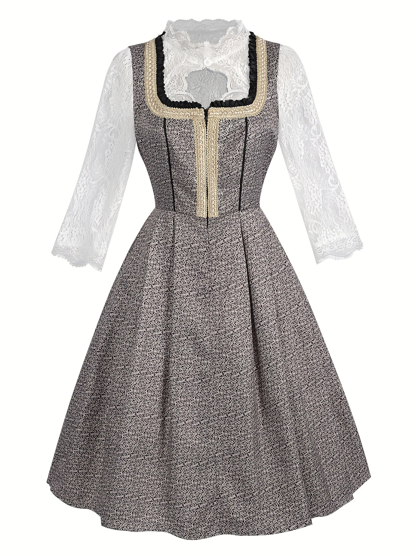 Für einen stilvollen Auftritt bei jedem Fest. Das Festzauber Damen-Corsagenkleid besticht durch seinen figurbetonten Schnitt, die dekorativen Spitzenakzente und die detailreiche Corsage. Das Mid-Length-Design sorgt für einen eleganten Look – perfekt für Feste, Themenpartys oder besondere Anlässe.