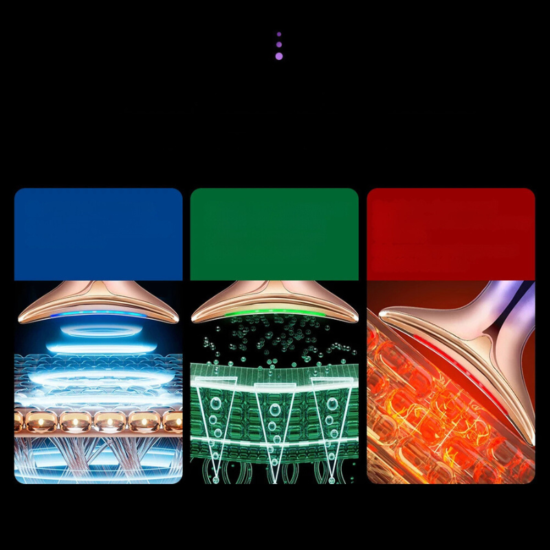 - Drei-Farben-Phototherapie: Blaues Licht beruhigt die Haut, grünes Licht verbessert die Elastizität, und rotes Licht stimuliert die Kollagenproduktion zur Wiederherstellung jugendlicher Haut.