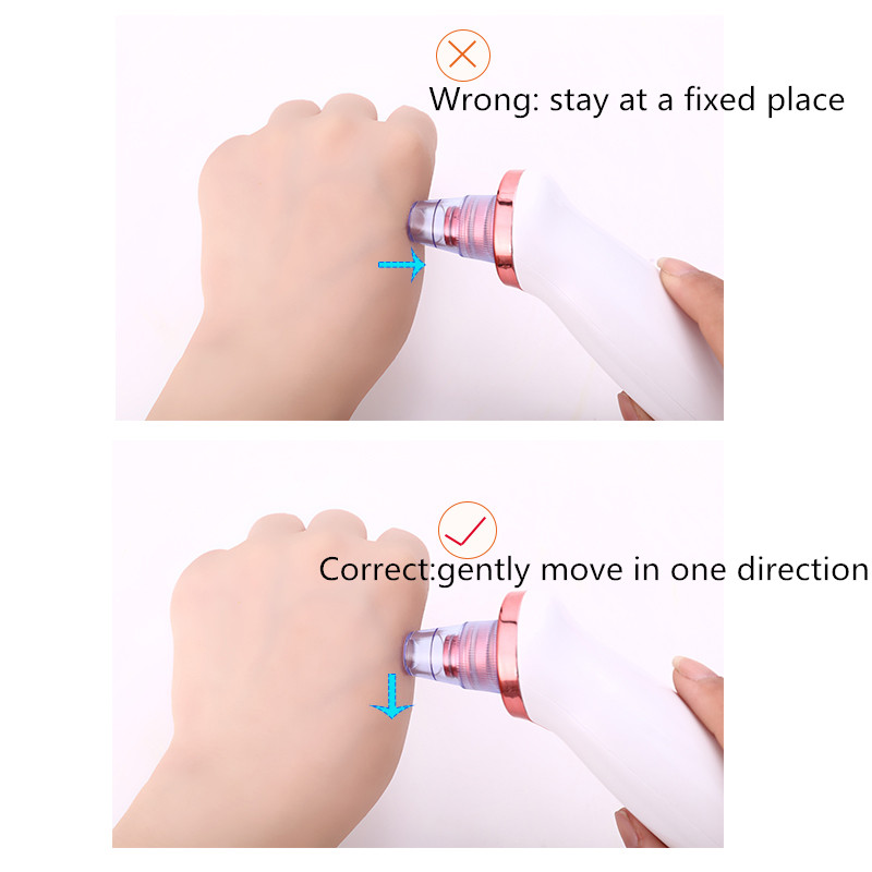 - Sanft gleiten: Führe das Gerät langsam über das Gesicht und konzentriere dich dabei auf verstopfte Hautbereiche.