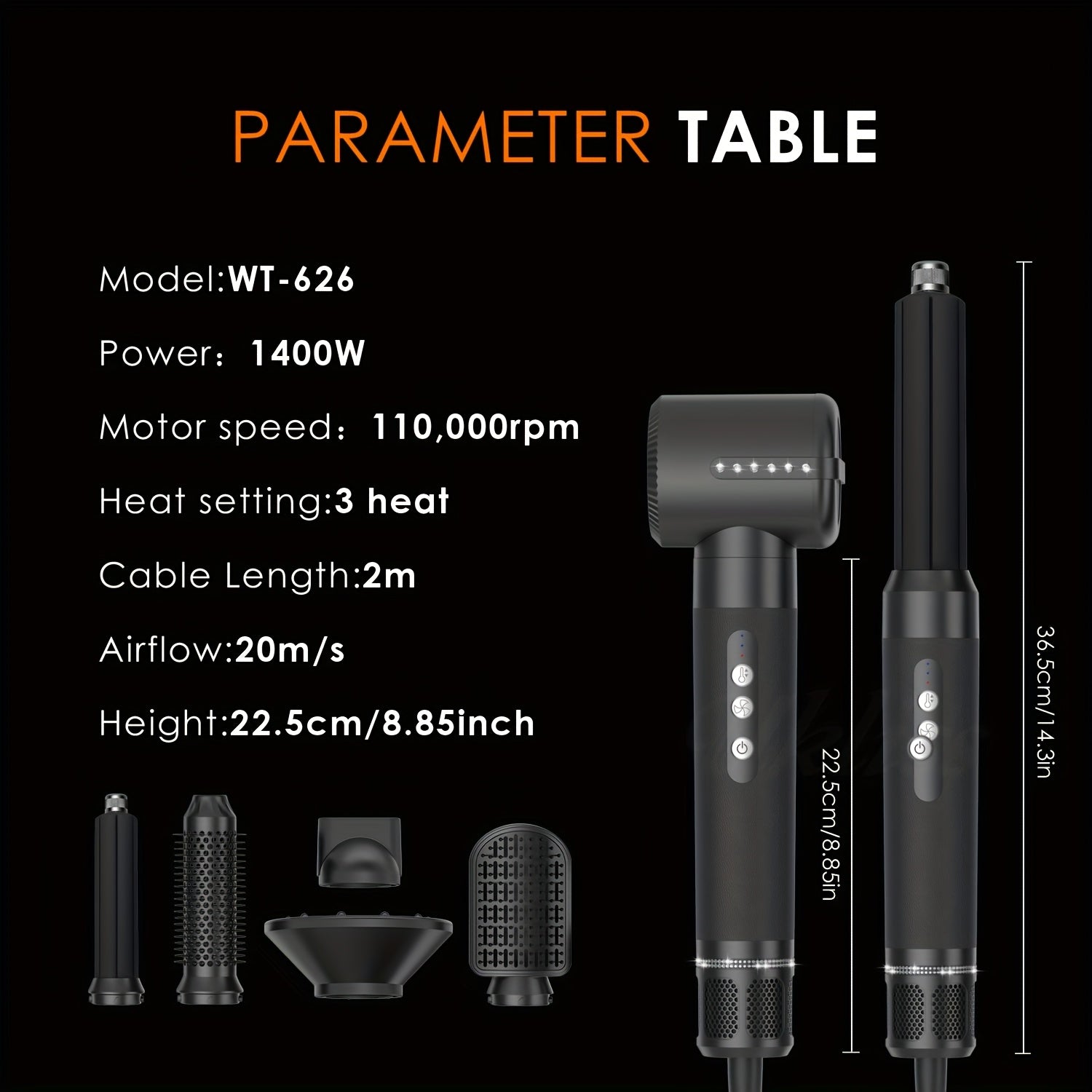 • High‑Speed Motor: bis zu 110000 RPM für schnelles, effizientes Trocknen.